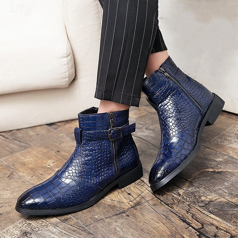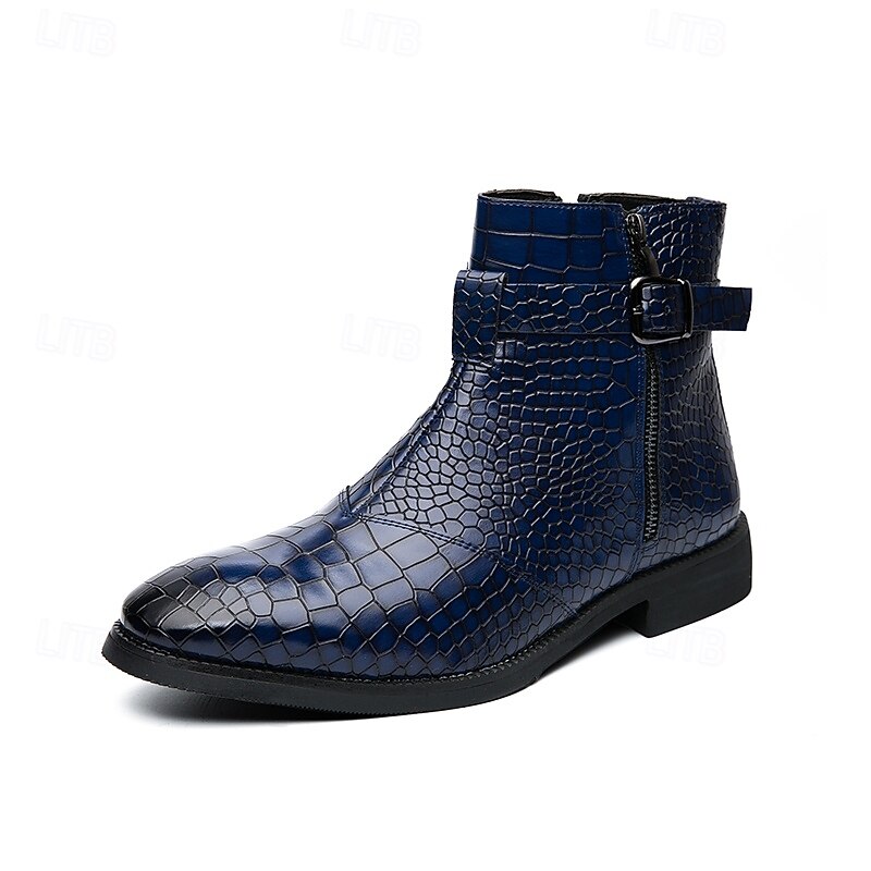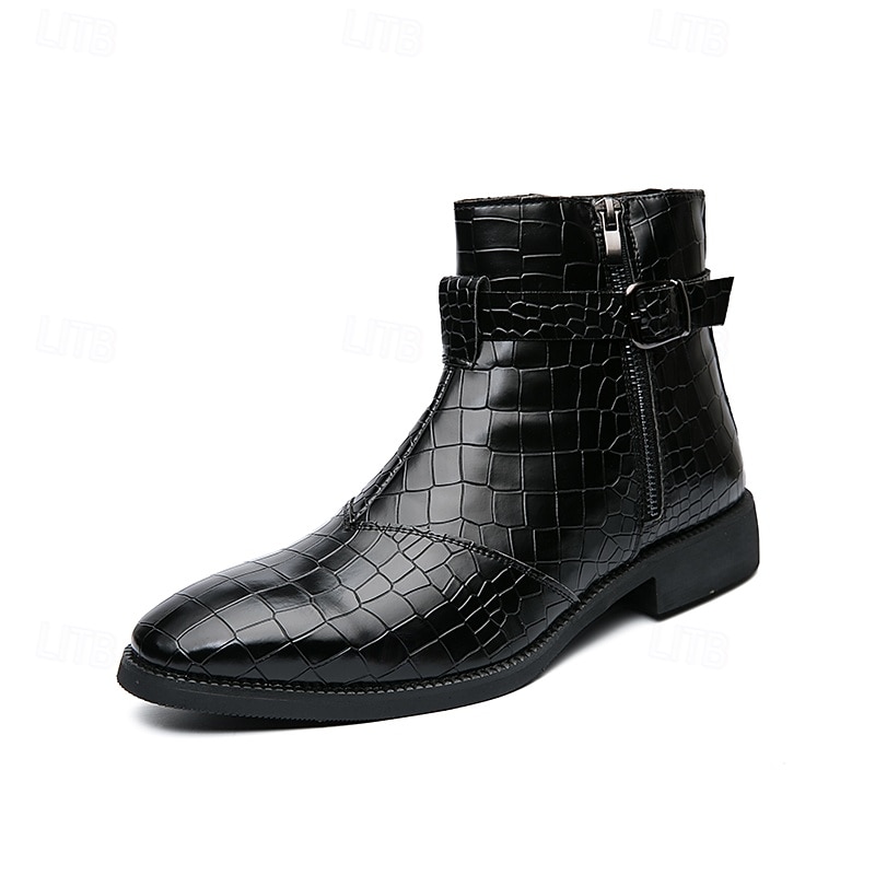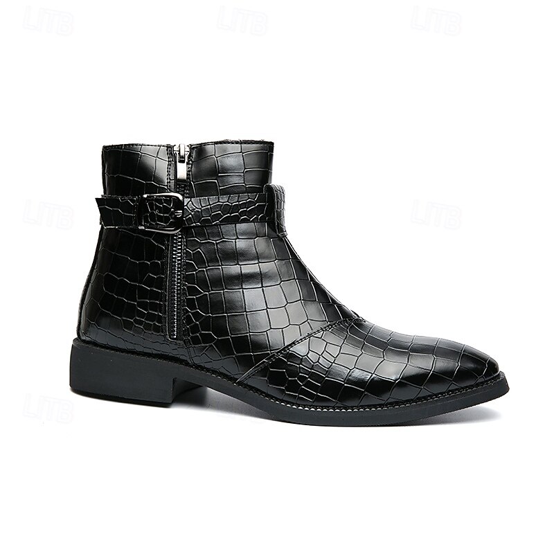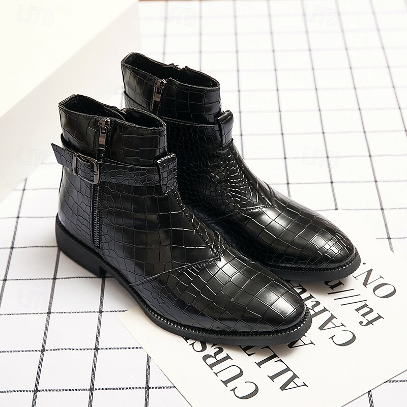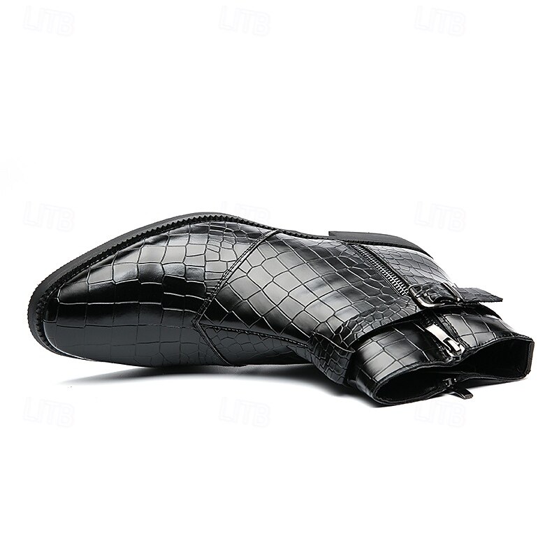 HOT ! Men's Black Crocodile Pattern Side-Zip Boots, Faux Leather Punk Style Shoes for Night Out and Concerts