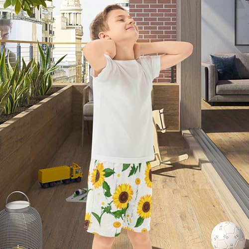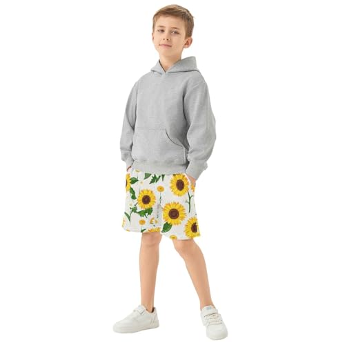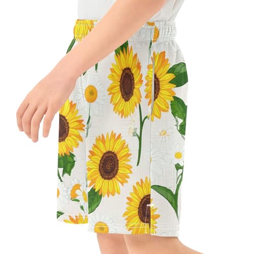 Sunflowers and Daisies Athletic Shorts with Zipper Pockets, Youth Boys Athletic Running Shorts for Summer