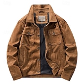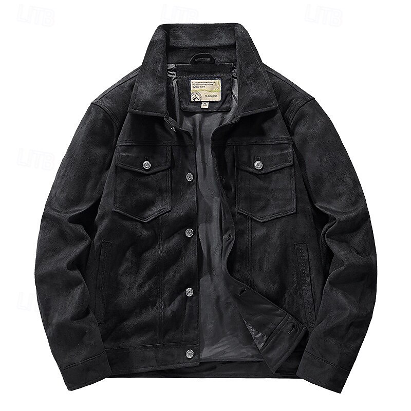 More information about Men's Lightweight Jacket Faux Suede Jacket Vacation Daily Pocket Spring Fall Plain Fashion Classic Lapel Regular Black Khaki Coffee Gray Jacket