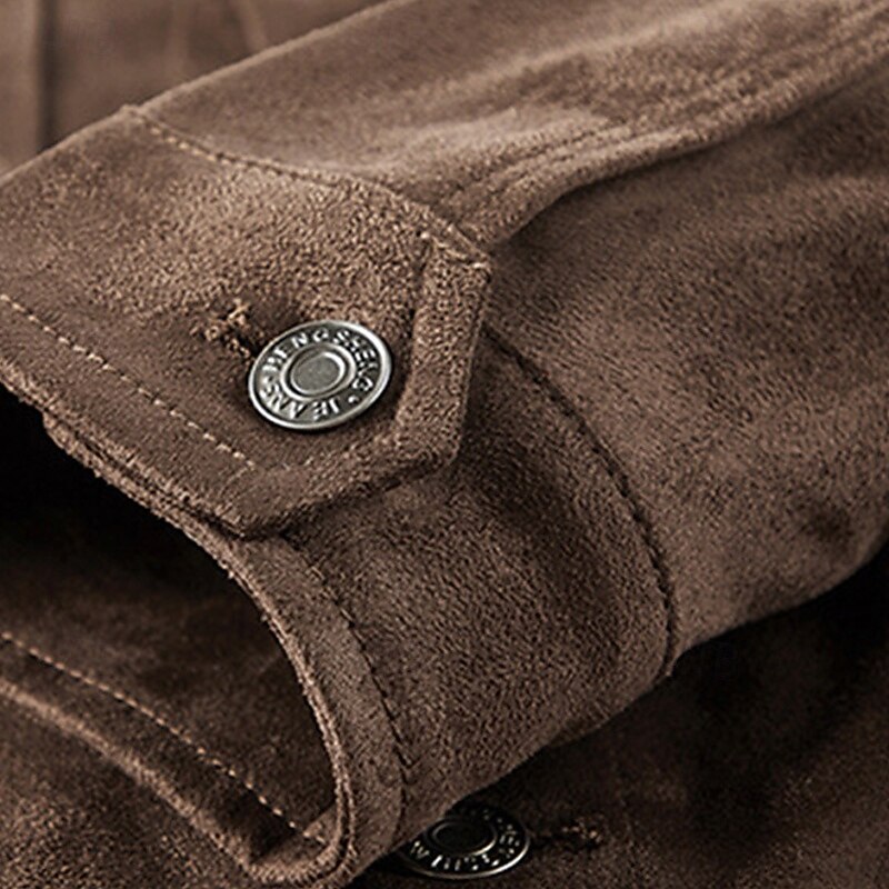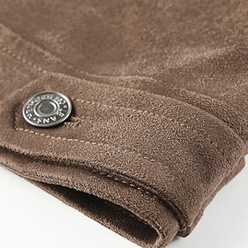 Men's Lightweight Jacket Faux Suede Jacket Vacation Daily Pocket Spring Fall Plain Fashion Classic Lapel Regular Black Khaki Coffee Gray Jacket 4