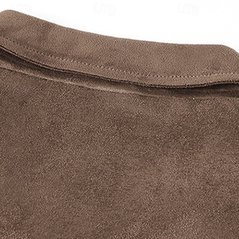 Men's Lightweight Jacket Faux Suede Jacket Vacation Daily Pocket Spring Fall Plain Fashion Classic Lapel Regular Black Khaki Coffee Gray Jacket 5