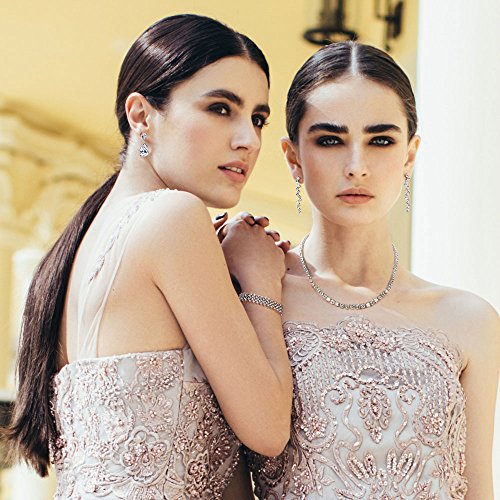 • ELEGANT BRIDAL ACCESSORY: Elevate your bridal look with this timeless estate jewelry style tennis necklace. Featuring a strand of graduated 5-3mm round cut cubic zirconia stones in prong settings, this necklace drapes gracefully around your neckline. Perfect for adding a touch of sparkle and glamour to your special day. Secured with a tongue latch snap clasp for easy wear.
