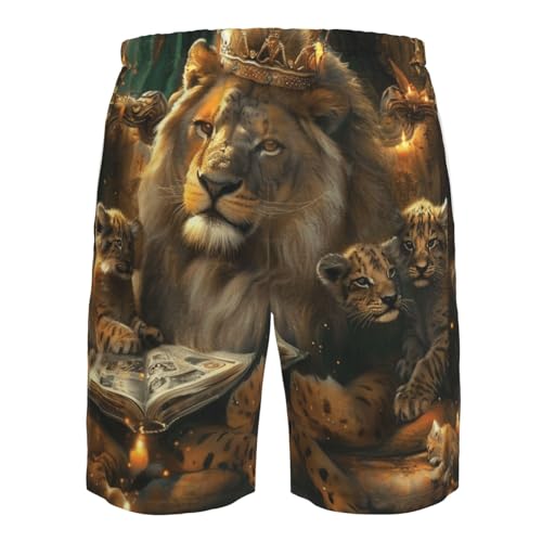 HOT ! Men's Quick Dry Swim Shorts Lion Elegant Crown Fantasy Magic Art Style Beach Trunks with Pockets