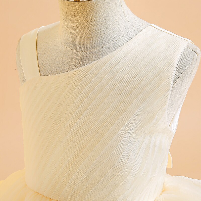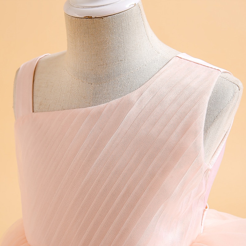 More information about Kids Girls' Party Dress Solid Color Sleeveless Formal Performance Wedding Ruched Elegant Princess Cotton Maxi Party Dress Flower Girl's Dress Spring Fall Winter 4-12 Years White Champagne Pink