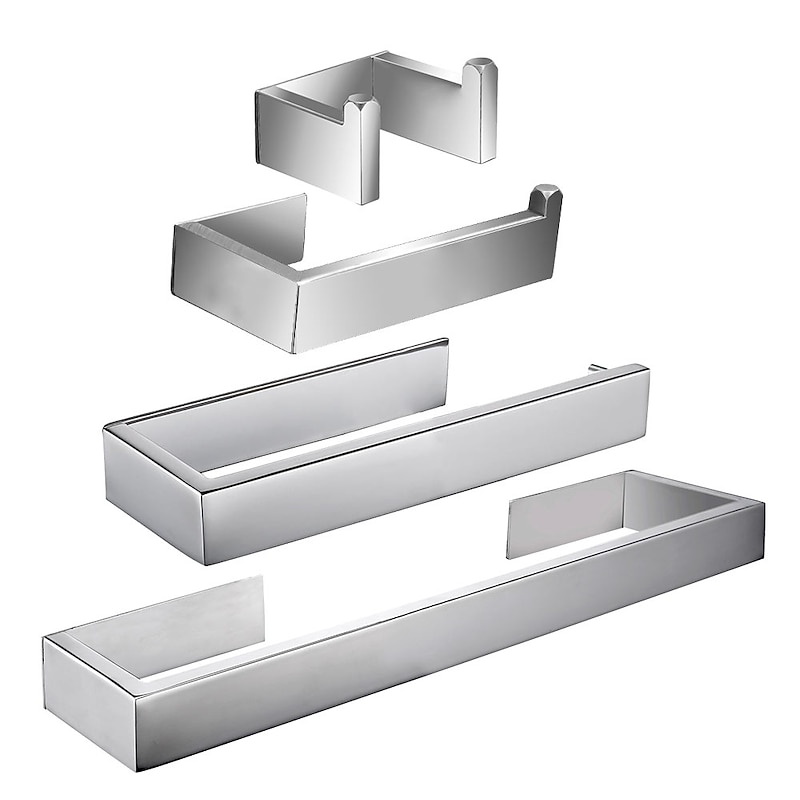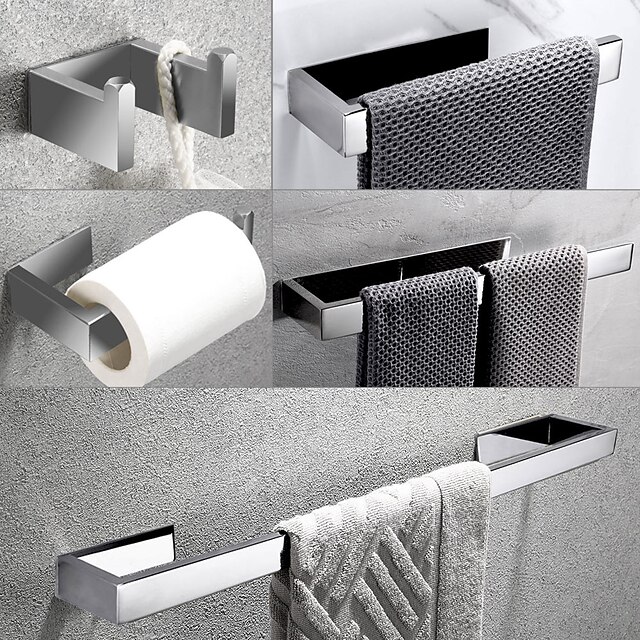 Bathroom Hardware Accessory Set Self-adhesive 304 Stainless Steel Include Robe Hook, Towel Bar, Towel Holder and Toilet Paper Holder Silver 1or3or4 pcs 4