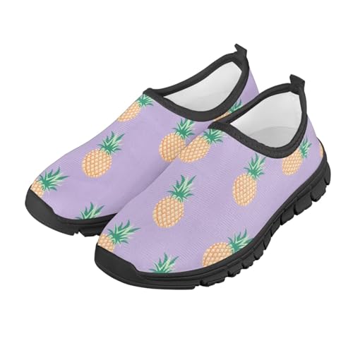 HOT ! Tropical Pineapple Kids Running Shoes Low-Cut Polyester Fabric Sneakers for Boys and Girls Casual Tennis Shoes Breathable Laceless Wide Shoes