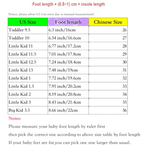 • Please according your kids foot length to choose the size,the kids foot grow highly rapid,you can choose one size up