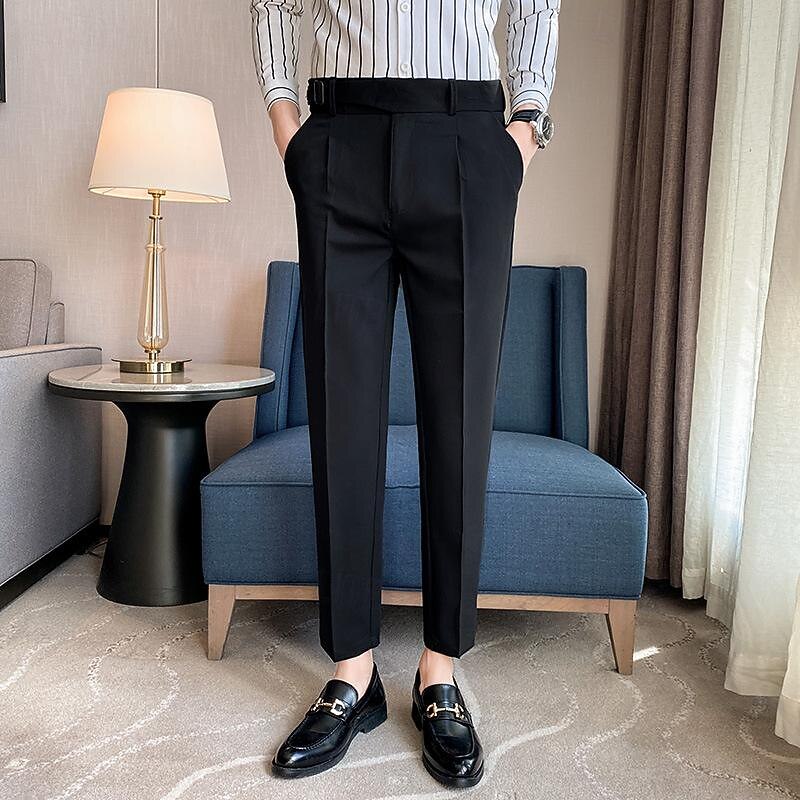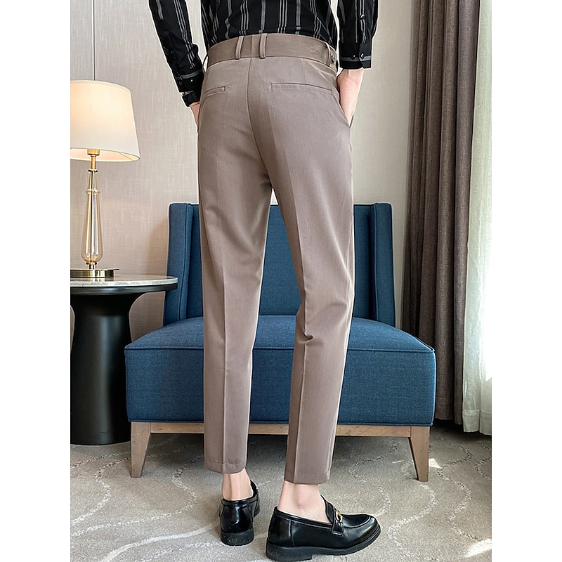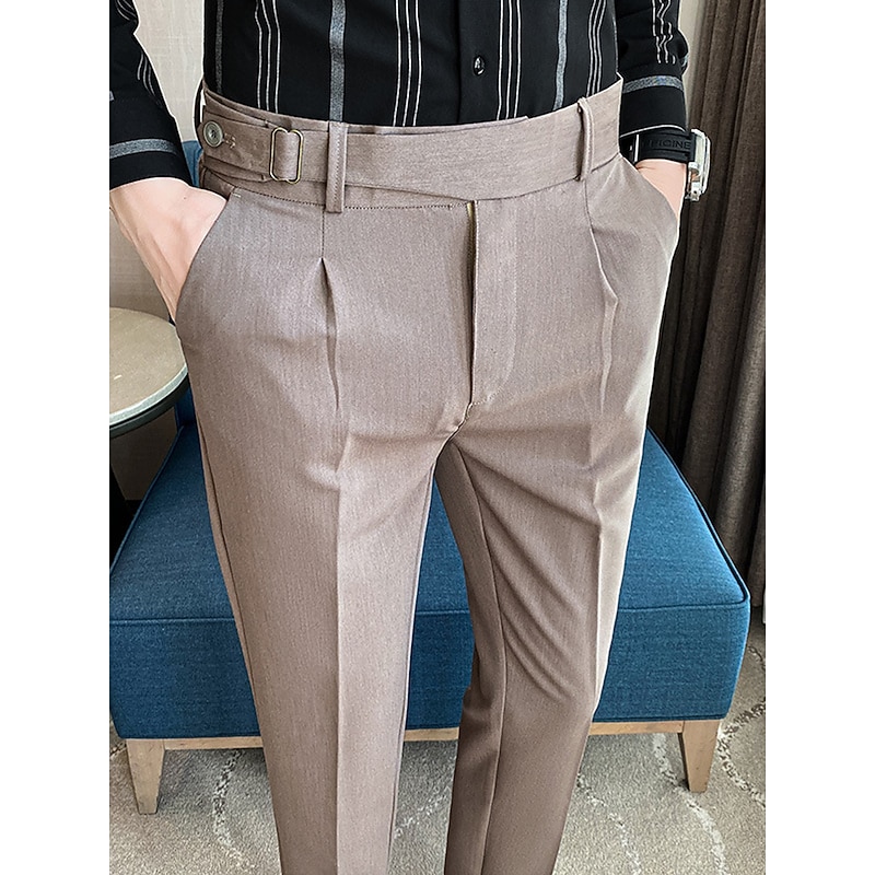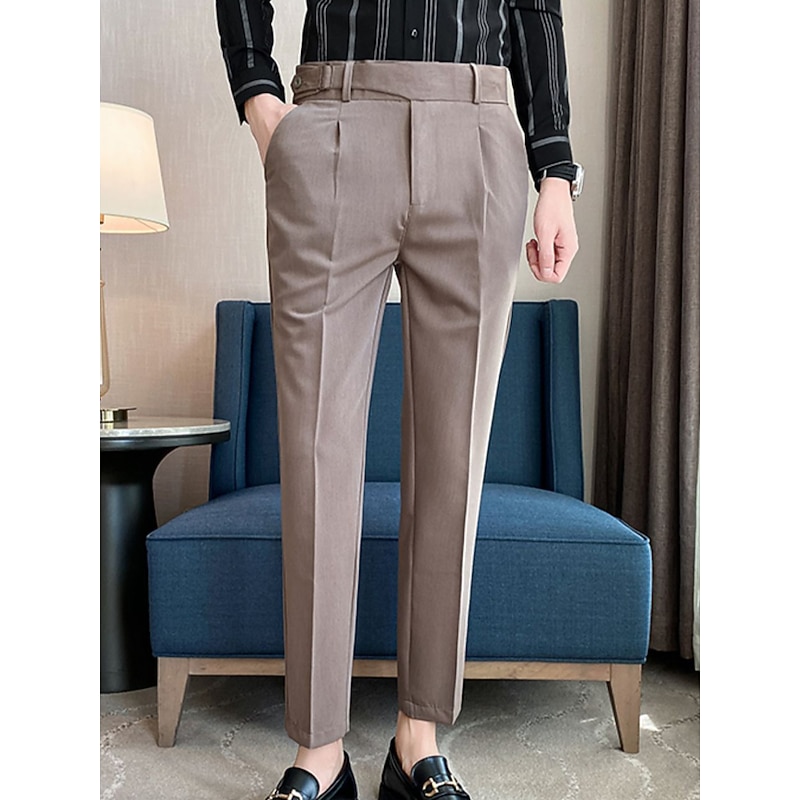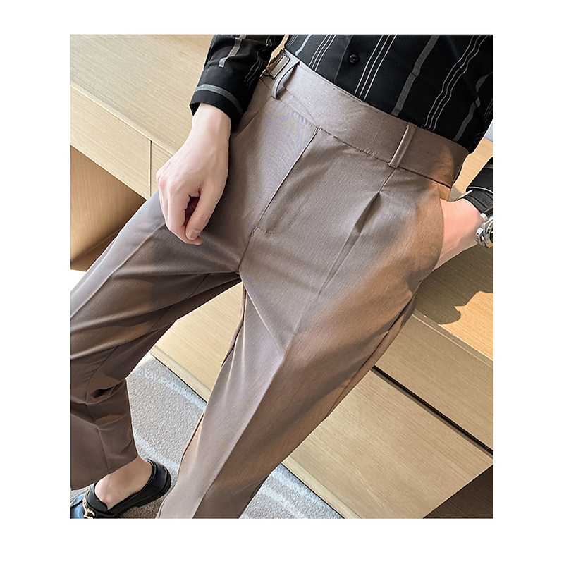 More information about Men's Graduation Dress Pants Trousers Pleated Pants Suit Pants Pocket Straight Leg High Rise Plain Comfort Breathable Business Casual Elegant Vintage Black Khaki High Waist