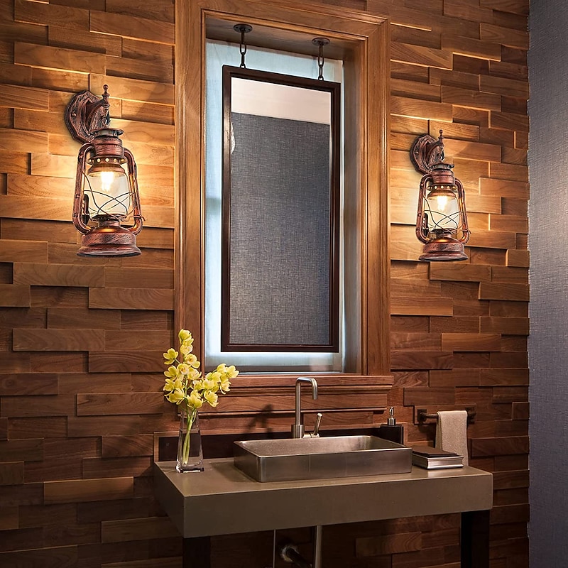 Why Choose Country Style Lantern Wall Lamp Retro Glass Shade Sconce Fixture for Bedroom Farmhouse Lighting 7 inches Deep x 15 inches High?