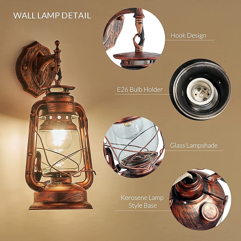 This Country Style Lantern Wall Lamp Retro Glass Shade Sconce Fixture for Bedroom Farmhouse Lighting 7 inches Deep x 15 inches High combines elegant design with practical functionality. Every detail has been carefully considered to ensure you get the ultimate possible experience. The first-class construction means this product will serve you well for years to come.