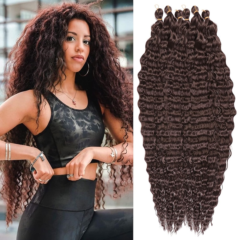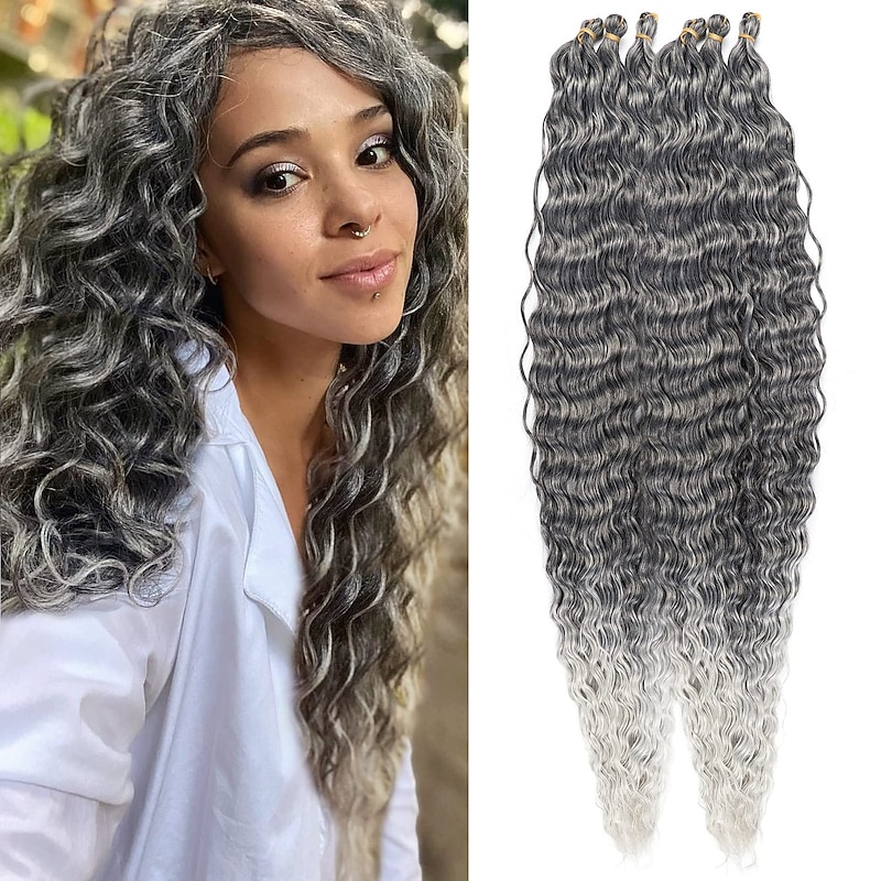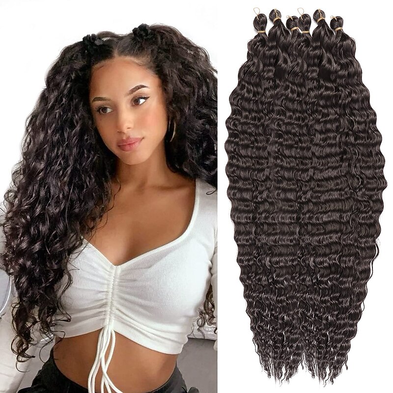 Ocean Wave Crochet Hair Extensions 6Pack 30Inch Deep Wave Curly Braids Hair #1B Natural Black Crochet Synthetic Hair Extensions 30inch 6packs 21
