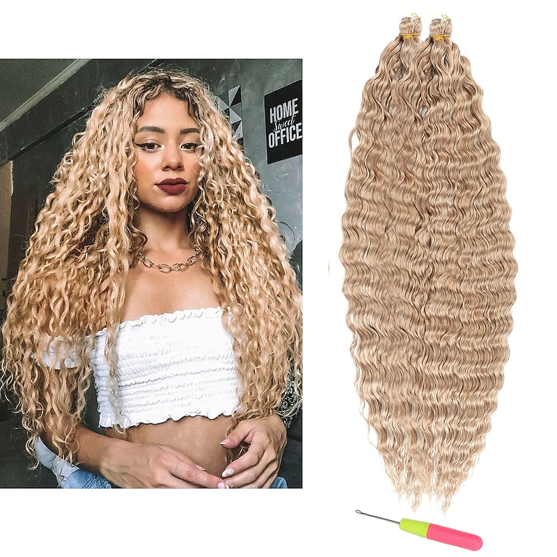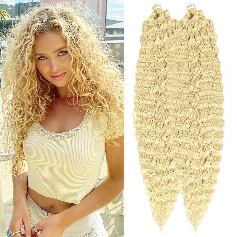 Highlights Material:Deep Wave Crochet Hair Extensions 100% High Quality Kanekalon Synthetic Fiber.Smooth,Tangle-free,Soft,Light Weight,Close to real hair. Quick to Install, Cut short,braid & Easy Styling.Shawl hair, braided hair, ponytail, etc. according to your preference. Proper Nursing:Wash and protect Wavy Crochet Hair like Our own curly hair,It is not recommended to use a comb your hair,Hair static electricity is serious in winter. It is recommended that you spray more water or essential oil before installation,You can use water or essential oil to Hair care by hand. it will be used for a long time If you take good care. Notice:There may be Some discrepancy between the color curl of Ocean Wave Crochet Hair and models. we have minimized the model's color curl difference.The picture is for reference only, please understand.