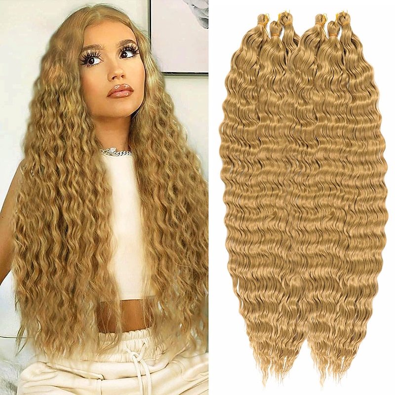 Ocean Wave Crochet Hair Extensions 6Pack 30Inch Deep Wave Curly Braids Hair #1B Natural Black Crochet Synthetic Hair Extensions 30inch 6packs 27