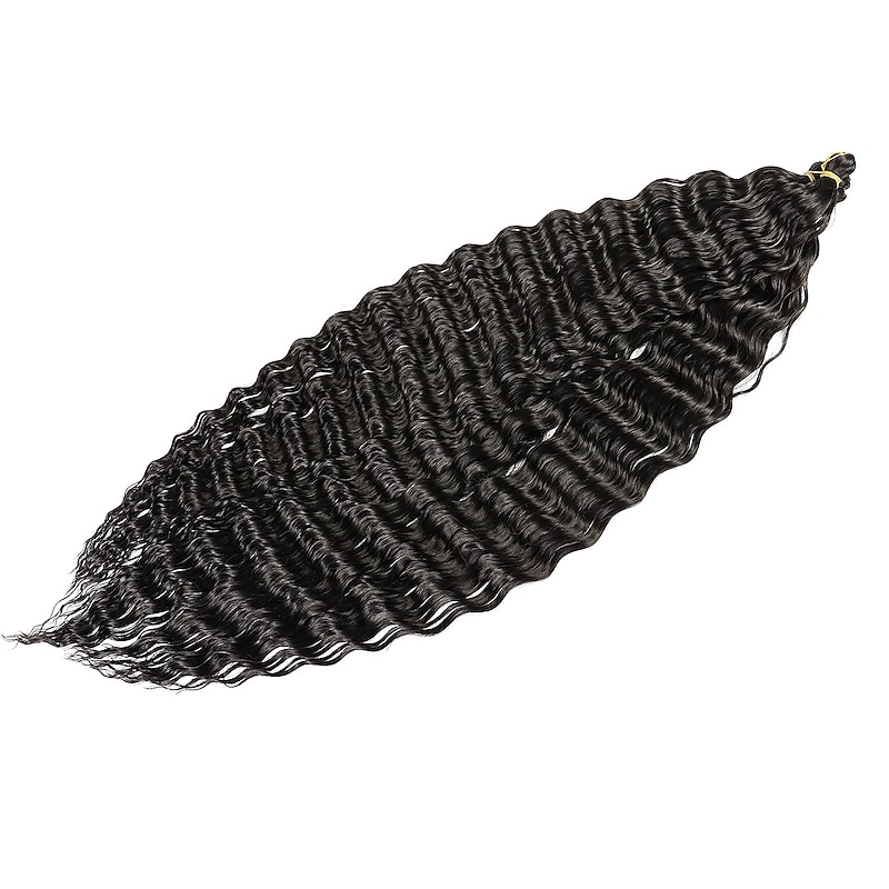 Ocean Wave Crochet Hair Extensions 6Pack 30Inch Deep Wave Curly Braids Hair #1B Natural Black Crochet Synthetic Hair Extensions 30inch 6packs 1