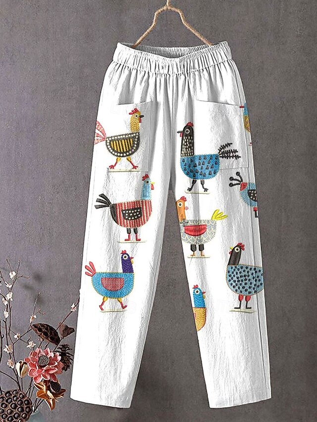 More information about Women's Chinos Baggy Pants Straight Vacation Vintage Fashion Full Length High Waist Graphic Animal Printing Soft Breathable Inelastic Formal Vacation Street White Pink Red Green Summer Spring Loose