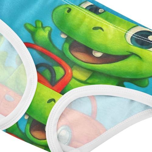 Girls Panties, Cute Green Cartoon Dinosaur Toddler Panties, Girls Underwear Cotton, 2T–8 Years