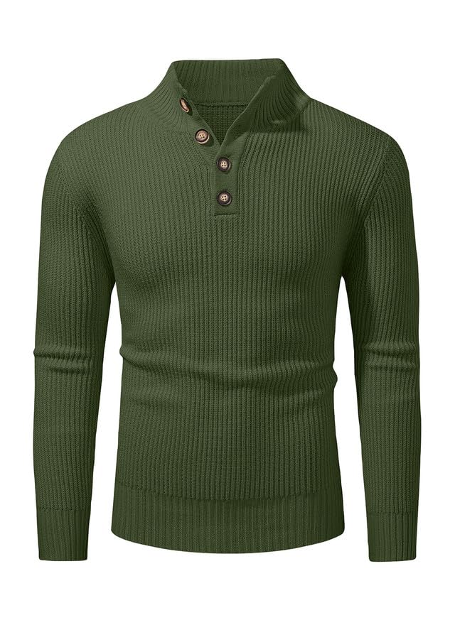 JMIERR Mens Casual Button Down Pullover Sweaters Slim Fit Turtleneck Basic Knitted Long Sleeve Mens Lightweight Sweater 6