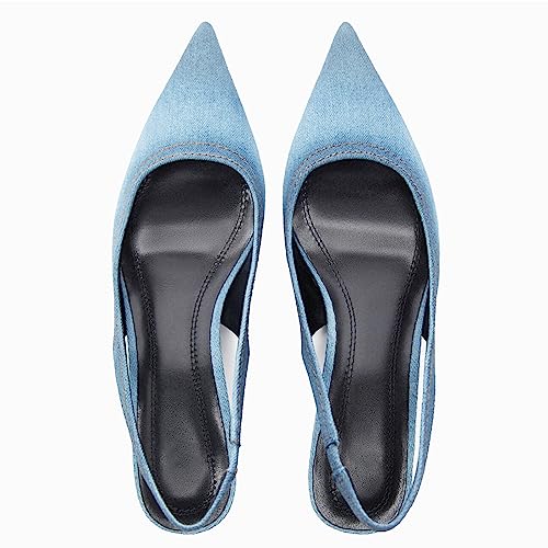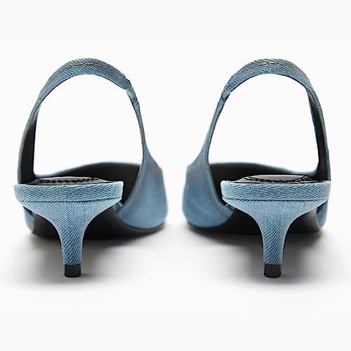 EFTCAL Women's Pointed Toe Denim Low Heel Pumps Shoes,Slingback Ankle Strap Fashion Kitten Heel Dress Shoes Office Work Shoes 4