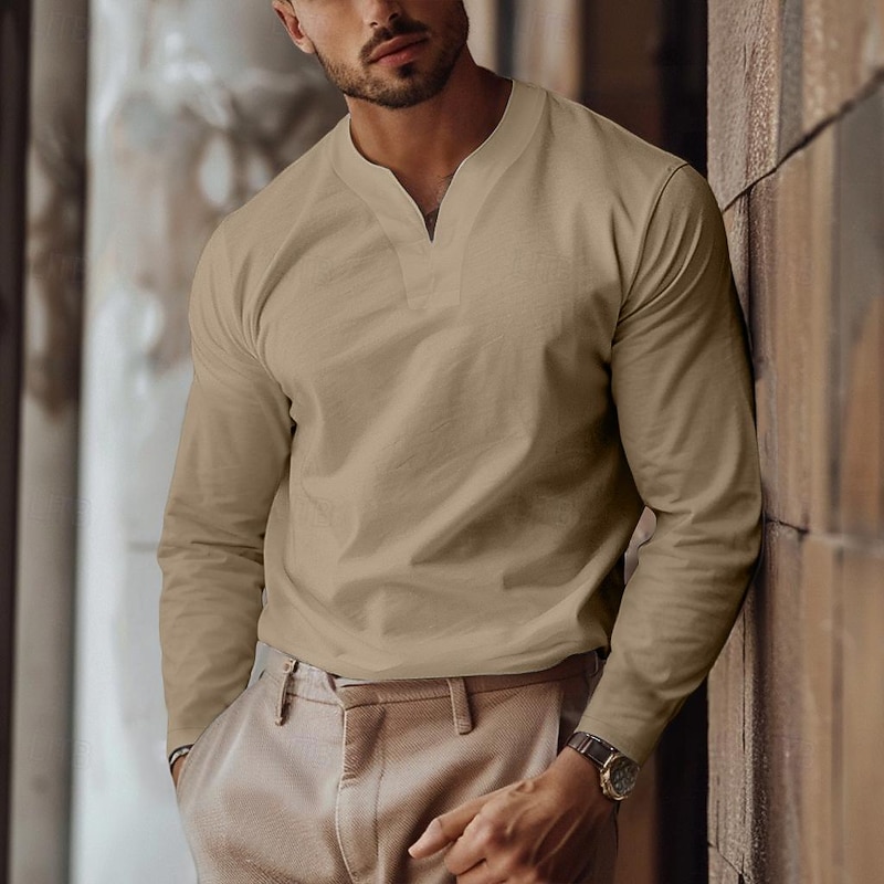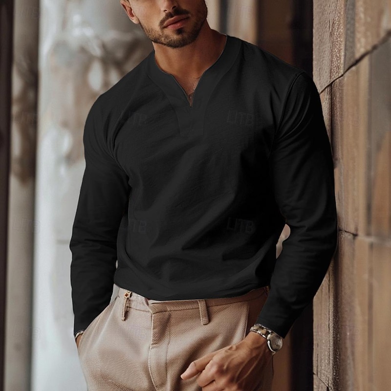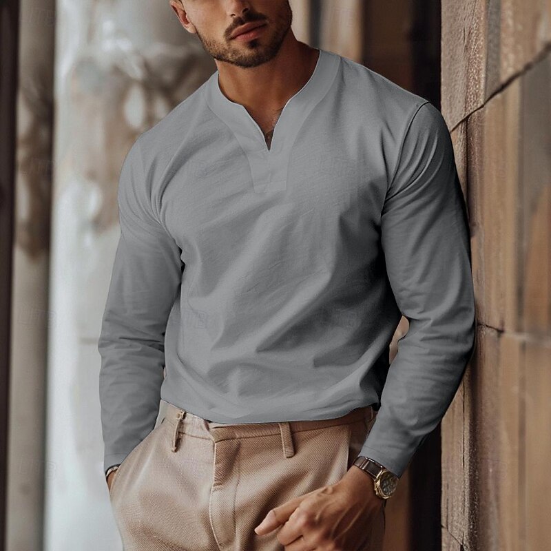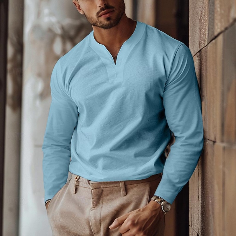 More information about Men's T Shirt Long Sleeve Shirt Long Sleeve V Neck Spring & Fall Plain Fashion Designer Casual Street Sports Holiday Light Blue Dark Grey Black Top Tee for Men