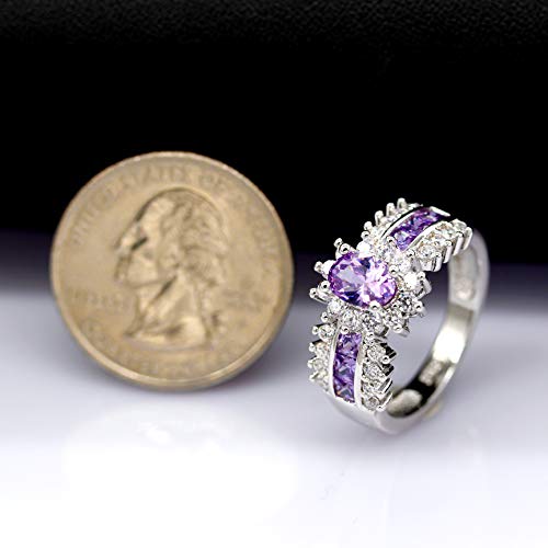 Uloveido Women's Platinum Plated Oval Cut AAA CZ Half Eternity Ring Promise Engagement Band Fashion Wedding Jewelry J558 7