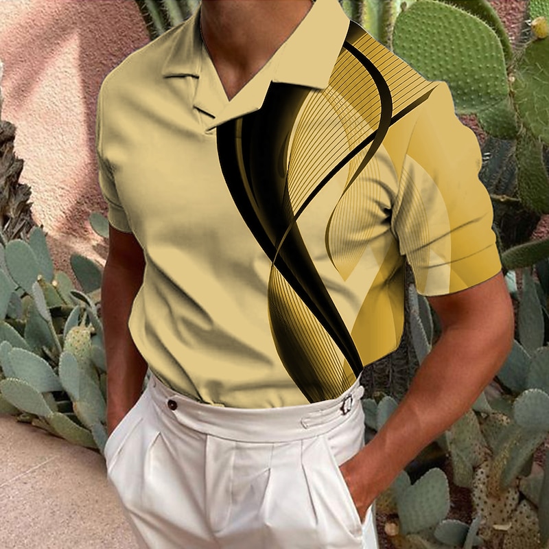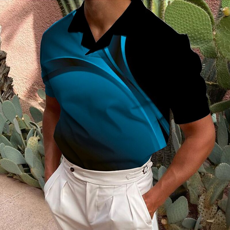 Highlights [Fabric] : Made from high-quality polyester, this men's polo shirt is designed to offer breathability and comfort. The lightweight material ensures ease of movement, making it perfect for active days out or a casual stroll. [Fit] : Featuring a regular fit, this shirt maintains a relaxed and comfortable silhouette. It includes a structured turndown collar, enhancing its versatility for both casual and semi-formal settings. [Design Highlights] : The shirt showcases an eye-catching gradient abstract graphic print, seamlessly blending modern artistry with vibrant colors. The 3D print technology adds depth and texture, while the intricate geometric and graphic patterns provide a bold statement. [Occasions] : Ideal for street style, casual outings, or sports events, this polo shirt complements any adventure. Whether you're heading to a golf course or an outdoor lunch, its stylish design ensures you remain trendy and comfortable. [Size Range] : Available in a wide range of sizes from S to 3XL, catering to adult men seeking a sophisticated addition to their wardrobe.