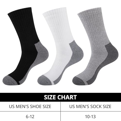 eallco Mens Crew Full Cushioned Athletic Work Socks Thick Training Heavy Duty Socks for Men 6 Pairs 6