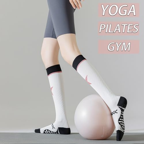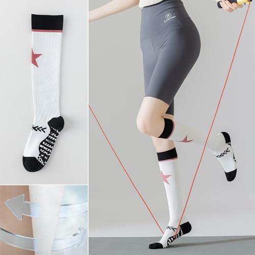 CHUNFO Womens 20-30mmhg Compression Grip Socks Star Calf Pilates Yoga Running Stockings Hiking Gym Support Sock Size5-9 5