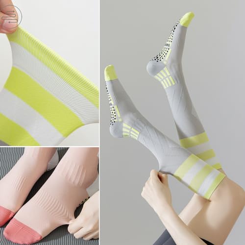 • 【Size, Stylish】US women size 5-9, men size 4-7.5. Colourful wide band ribbed cuffs improve elasticity and comfort, reinforced toes and heels protect ankles, toes, the calf muscles. Grips give stability