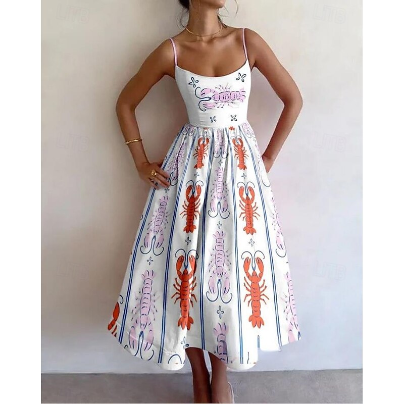 Women's Midi Dress Sheath Dress Vacation Casual Formal Party Graphic Animal Fish Sleeveless Spaghetti Strap White+Black Blue White White Red Summer Spring 12