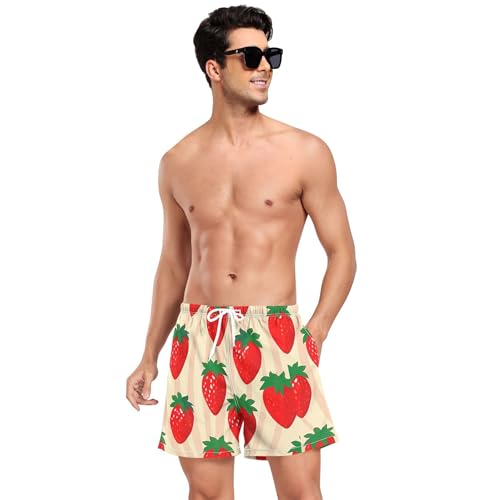 More information about xigua Strawberry Pattern Mens Swim Trunks with Liner, 5 inch Quick Dry Mens Boardshorts for Beach