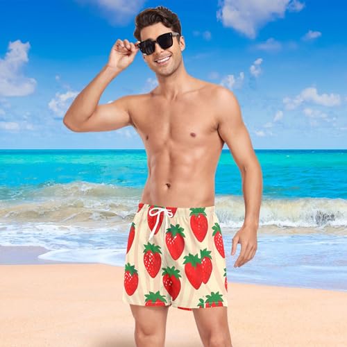 HOT ! xigua Strawberry Pattern Mens Swim Trunks with Liner, 5 inch Quick Dry Mens Boardshorts for Beach