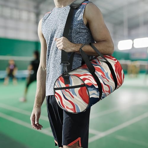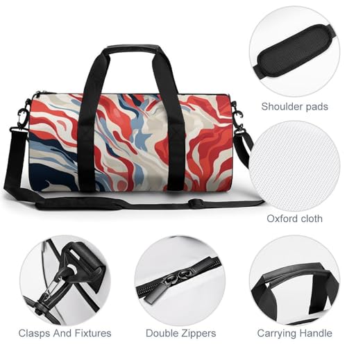• Practical Yet Elegant: Red And White duffel bag is waterproof on the outside and breathable on the inside. You don't have to worry about losing your belongings even if you carry this sports bag on rainy days. The brightly colored print on the outside makes it easier to identify.