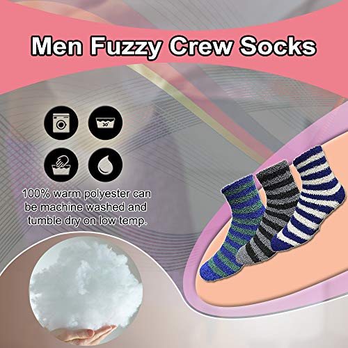 Fabric type: PolyesterCare instructions: Machine WashOrigin: ImportedPattern: Plaid12 PAIRS STRIPED MENS FUZZY SOCKS : Every pack includes 12 pairs of soft and cozy fuzzy socks for men. These socks are perfect during the fall and winter seasons. Keep your feet warm and cozy this winter. It almost feels like walking on a cloud!FLUFFY WINTER SOCKS: Great for everyday wear and lounging at home. You can even sleep with fuzzy socks on to give your feet the additional warmth it needs for a good night sleep. Whether youβre watching TV, having dinner, or reading a book, these fuzzy socks are the perfect companion for colder temperatures.PLUSH & COMFORTABLE: Gives your feet some protection from the cold floors, especially if you have hardwood or tiled floors. Treading around the house or walking to the bathroom in the middle of the night would be that much more comfortable.SOFT FUZZY SOCKS: Choose from a wide range of different colors and patterns. Some fuzzy socks feature gripper bottoms for traction. This will reduce your chances of slipping or falling on smooth surfaces like hardwood floors making them the perfect pair of slipper socks for the winter.A THOUGHTFUL GIFT: Sock size 10-13 will fit menβs shoe sizes 8-12. Made with 100% polyester for a soft touch and maximum comfort on the feet. Makes a thoughtful gift during the holidays or all year round! These socks can also be worn as boot socks. Perfect for everyday use. top-grade materials and excellent craftsmanship ensure long-lasting durability.