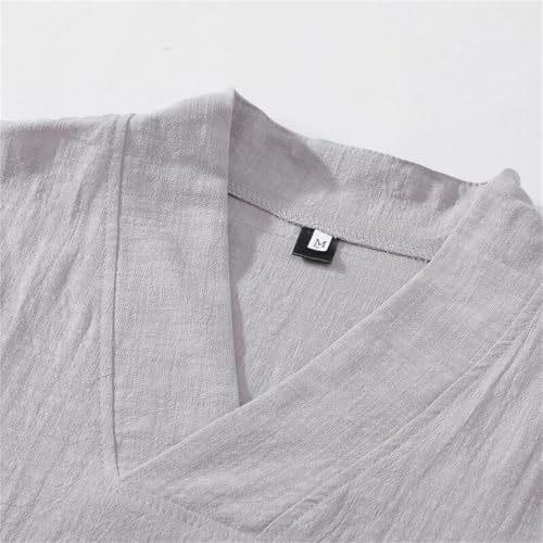 More information about 2025summer 3/4 Sleeve V-Neck Fashion T-Shirt Men's Two-Piece Linen Clothing Beach Casual Suit Comfortable Home Wear