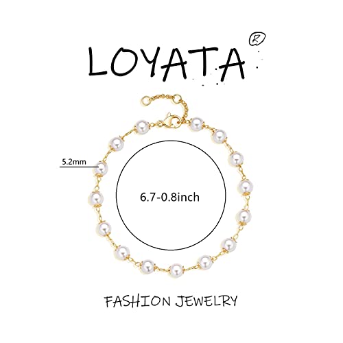 LOYATA Chain Bracelet Gold Link 14K Gold Plated Dainty Pearl Bracelet Simple Jewelry Gift for Women 6