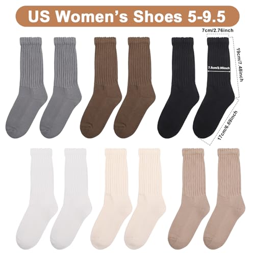 HOT ! Jspupifip 6 Pairs Slouch Socks for Woman Scrunch Socks Knit Mid Calf Rib Tube Scrunchy Slouchy Retro Trendy Crew Socks