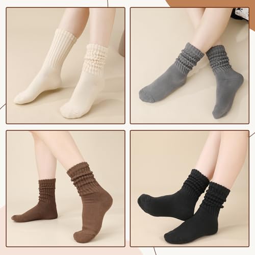 Jspupifip 6 Pairs Slouch Socks for Woman Scrunch Socks Knit Mid Calf Rib Tube Scrunchy Slouchy Retro Trendy Crew Socks 4