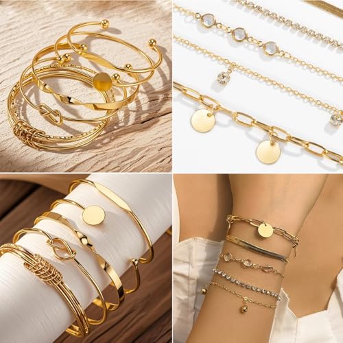 • Jewelry Set : You will get 46 pieces different styles gold jewelry with 4 pieces necklaces, 5 pairs earrings 15 pieces bracelets and 22 pieces rings. Each is a different style, satisfy ladies different everyday dress up demands. Different gold jewelry have different glamour.