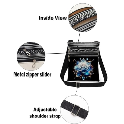 Rose Print CrossBody Bag Women Adjustable Shoulder Strap Messenger Bag Christmas Valentine Present​​ Great Gift Women Birthday Festive Holidays​​ Present Floral Lover Gift 6