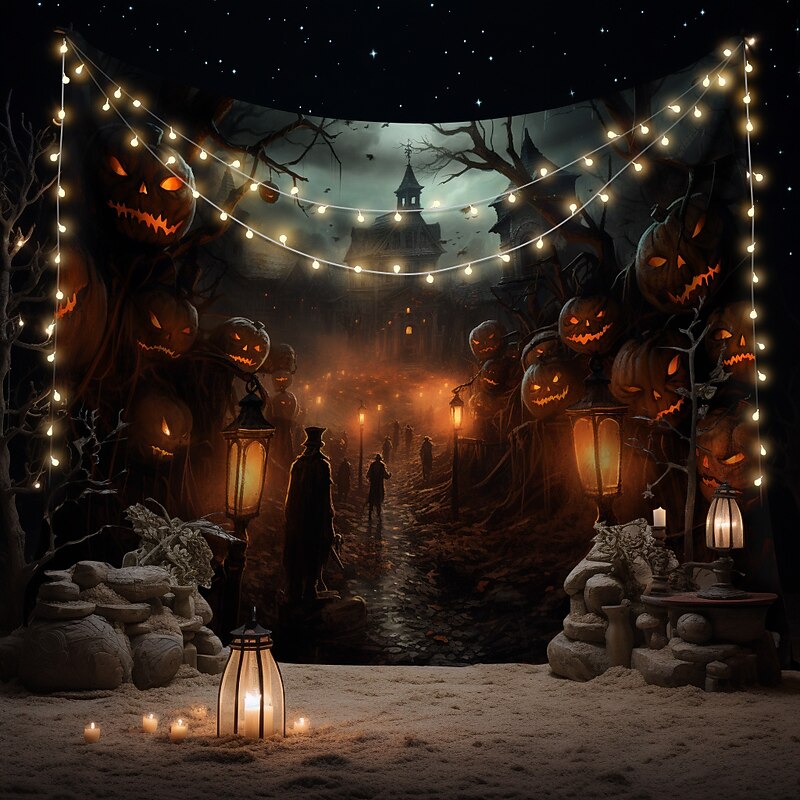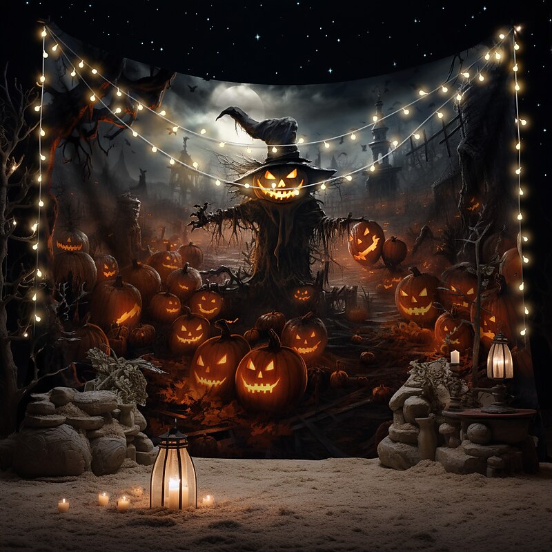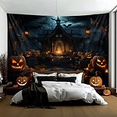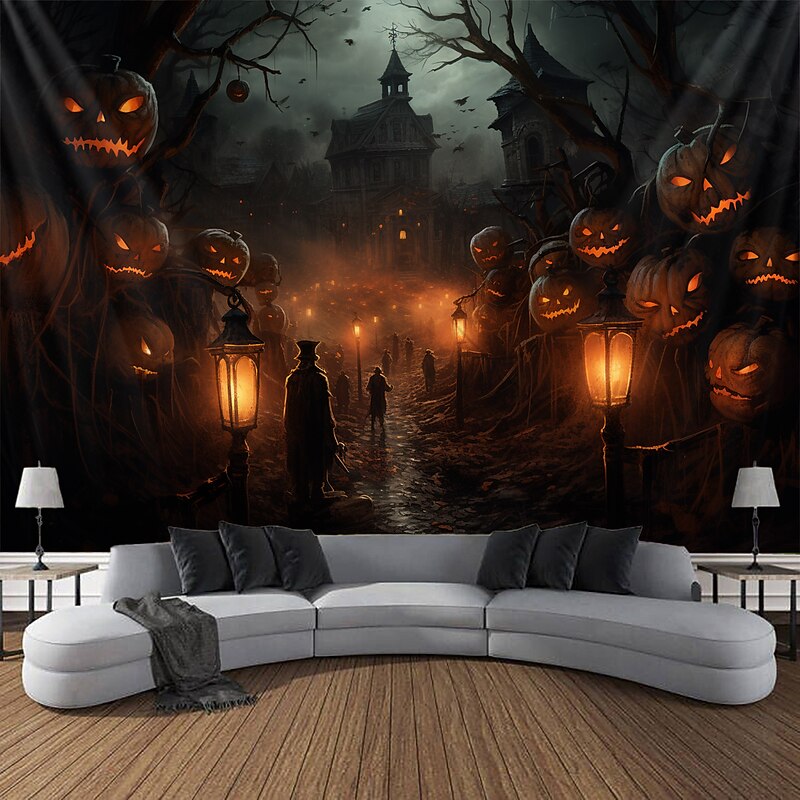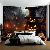 HOT ! Halloween Decorations Tapestry Jack O Lantern Pumpkin Decor Wall Art Large Hanging Tapestry Mural Photograph Backdrop Blanket Curtain Home Bedroom Living Room Scarecrow Haunted House Graveyard