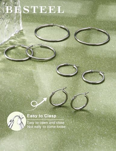 • Sterling Silver Hoop Earrings Set : You'll receive 4 pairs sterling silver hoop earrings for women.The inner diameter of sterling silver hoop earrings are 14mm/20mm/30mm/40mm. These hypoallergenic thin silver hoops are perfect for any occasion and daily life, adding effortless charm and confidence to your daily style.Featuring an upgraded latch back that's easy to put on and take off, they're lightweight and comfortable for everyday wear. It's the great addition to your earring collection!