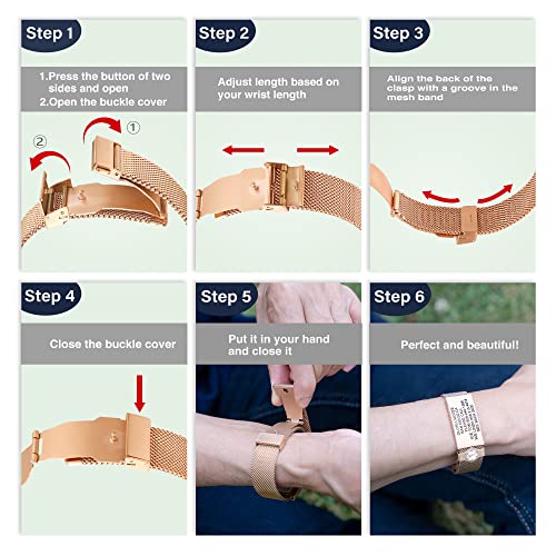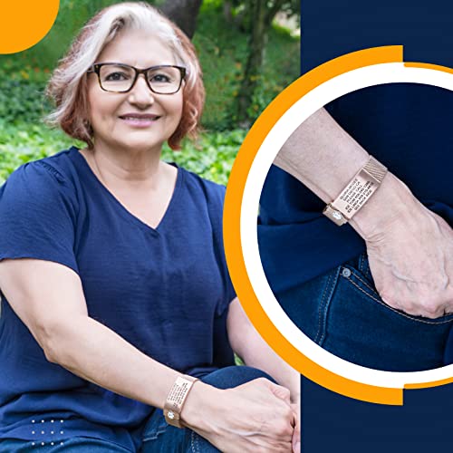 Divoti Deep Custom Engraved Medical Alert ID Bracelet – Custom Medical ID 5 Lines Front, 4 Back (24 Char Each) – Milanese Mesh Loop, Secure Clasp, PVD Rose Gold w/White Caduceus (5.5–7.8")