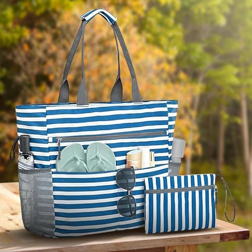 • Enhanced Usability Features: Featuring a waterproof wet/dry divider and internal key hook, this beach bag keeps must-haves sorted securely, enhanced by a padded handle designed to provide good grip and effortless portability during travel or outings