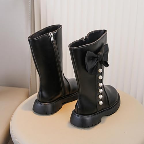 Boots for Girls Winter Cute Pearl Bowknot Zipper Riding Boots Fashion PU Leather Waterproof Mid Calf Boot for Kids 5