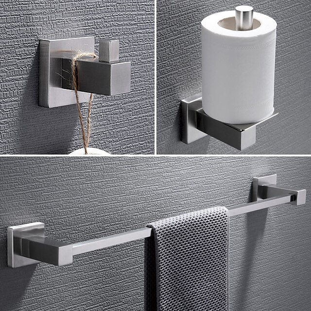 Bathroom Hardware Set Include Bathroom Towel Bar/Robe Hook/Towel Holder 304 Stainless Steel Wall Mounted Silvery 3 pcs 3