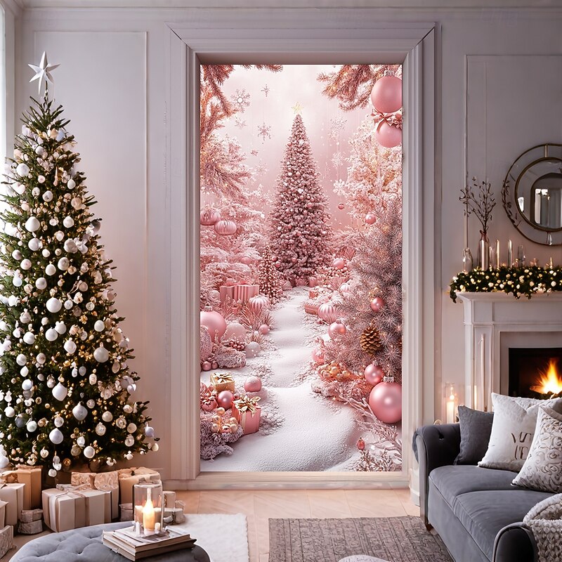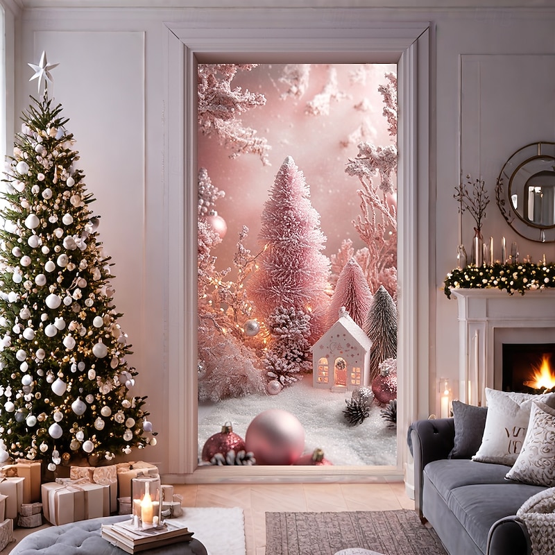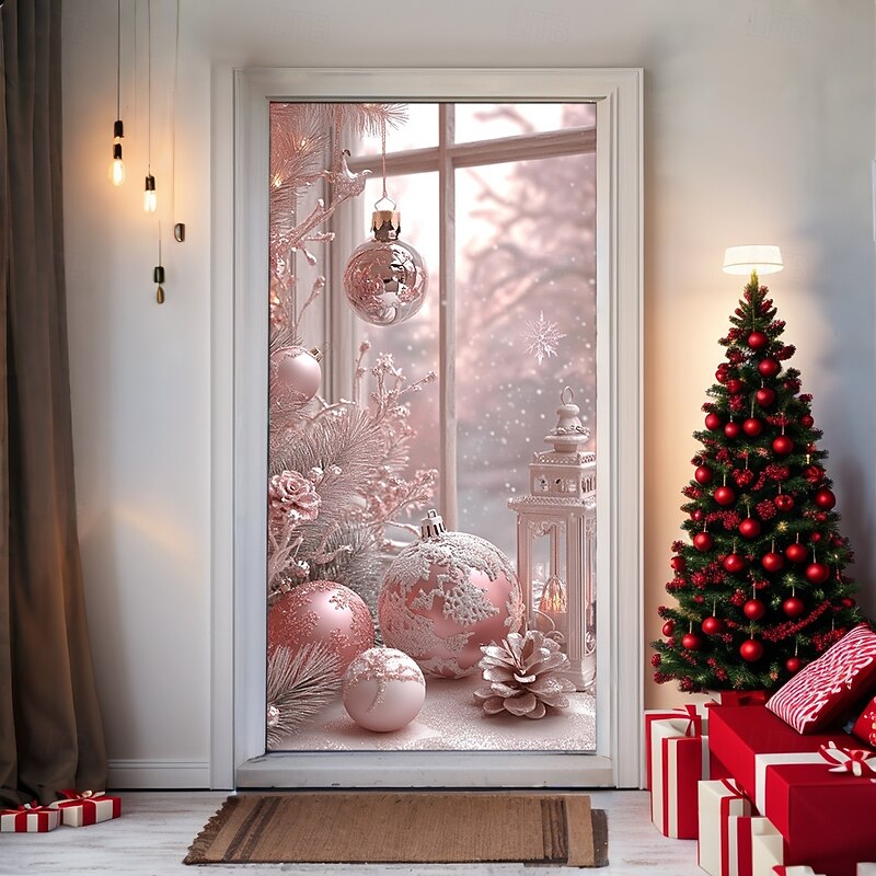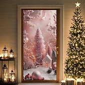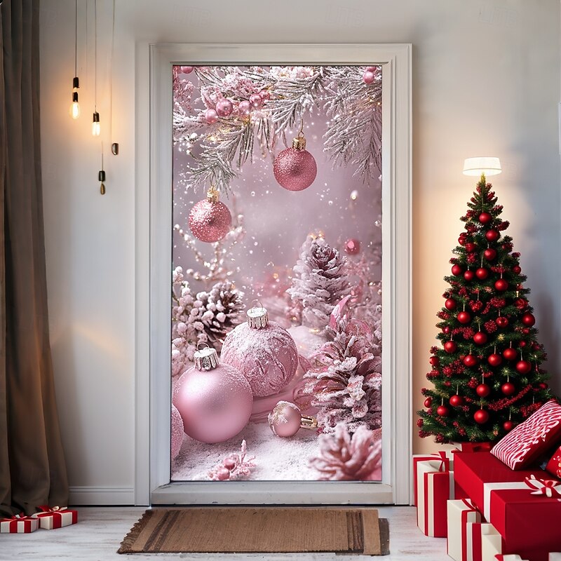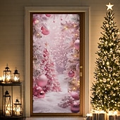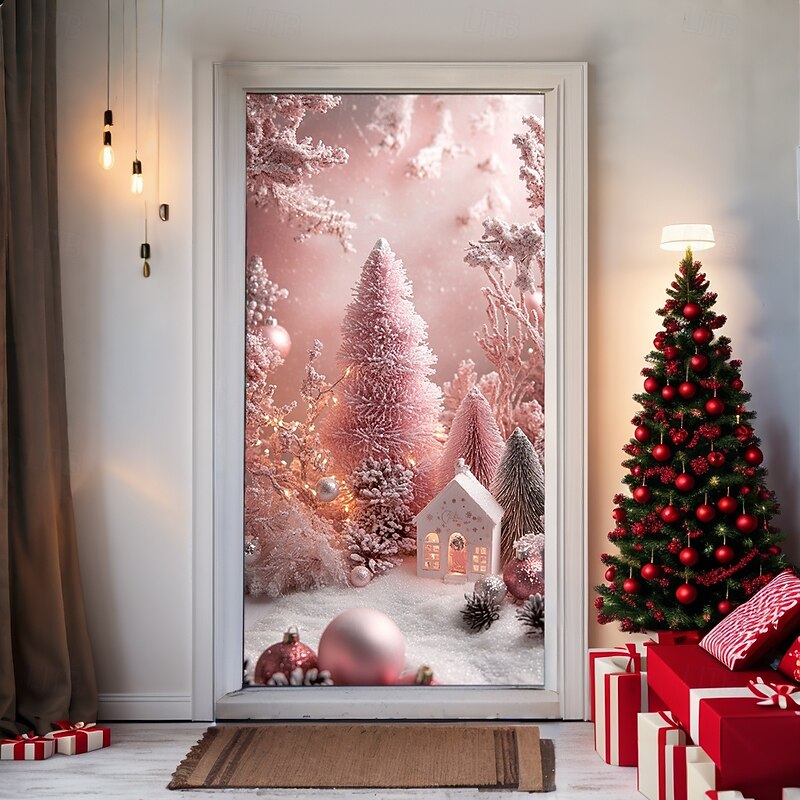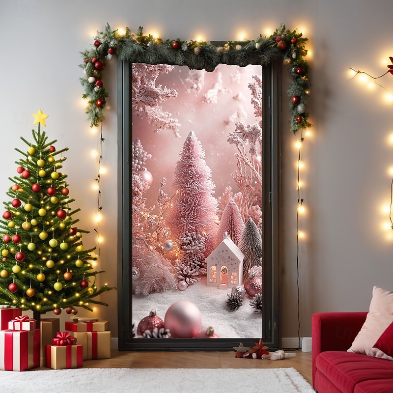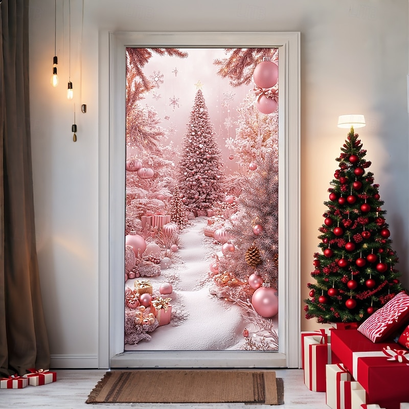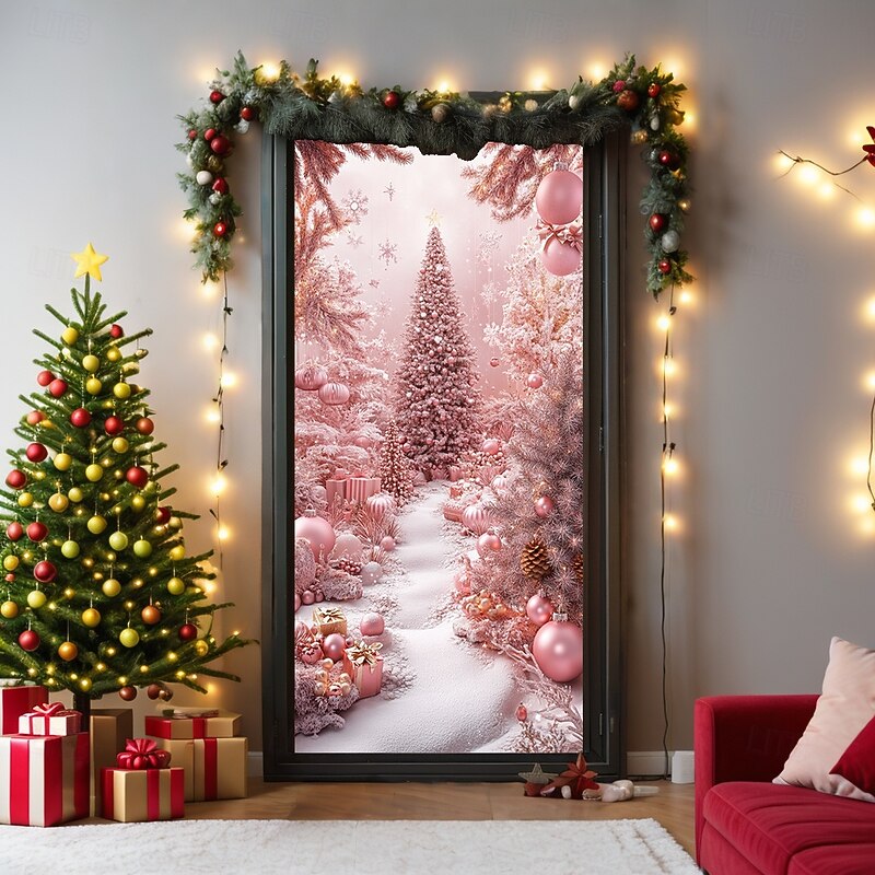 Why Choose Christmas Door Decorations Door Covers Pink Xmas Ornaments Door Tapestry Door Curtain Decoration Backdrop Indoor/Outdoor Door Banner for Front Door Farmhouse?