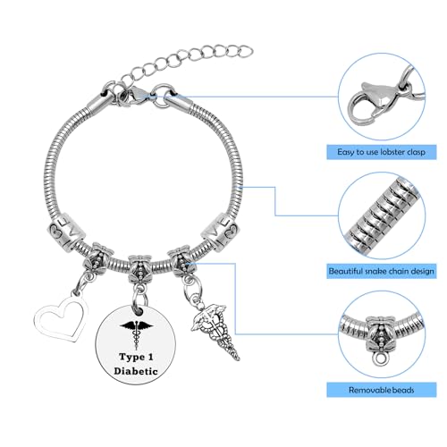 Mwphuy Medical Alert ID Bracelets for Women Type 1 Diabetic Gifts Inspirational for Women Diabetes Awareness Gifts Diabetes Doctor Specialist Endocrinology Gift Medical Alert Emergency Bracelet 1