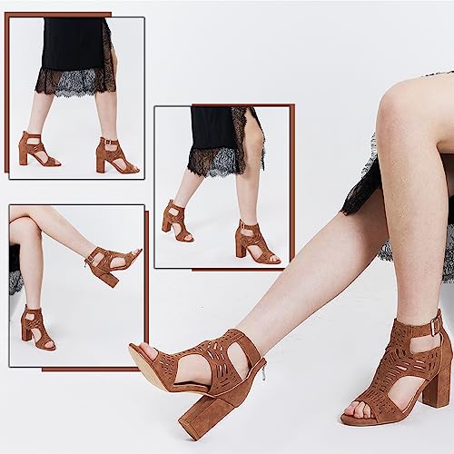 AOSPHIRAYLIAN Chunky Heeled Sandals for Womens Bohemian Cutout Open Toe Summer Block Heeled Party Sandals 6