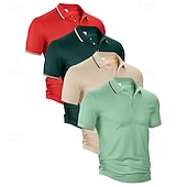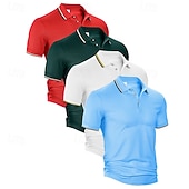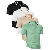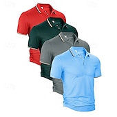 More information about Multi Packs 4pcs Men's Lapel Short Sleeves Black+White+Grey+Light Blue Button Up Polos Golf Shirt Golf Polos Shirts Buttons Plain Vacation Daily Wear Polyester Summer