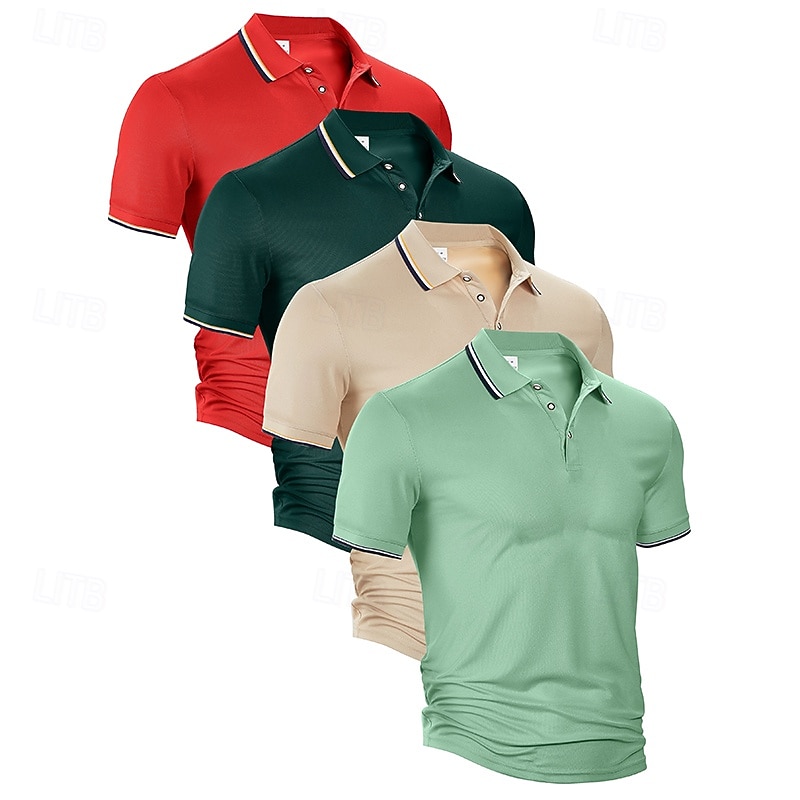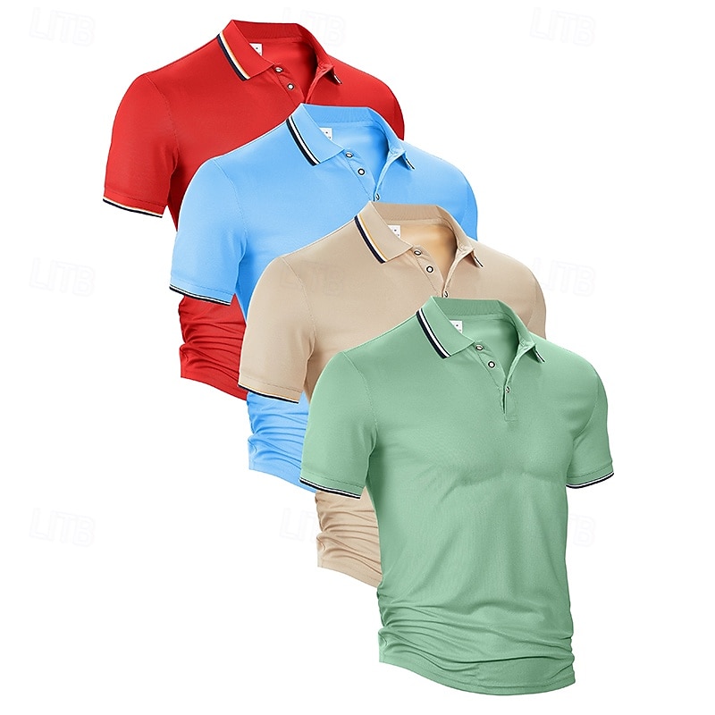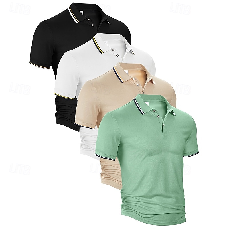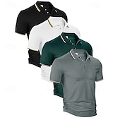 Multi Packs 4pcs Men's Lapel Short Sleeves Black+White+Grey+Light Blue Button Up Polos Golf Shirt Golf Polos Shirts Buttons Plain Vacation Daily Wear Polyester Summer 25